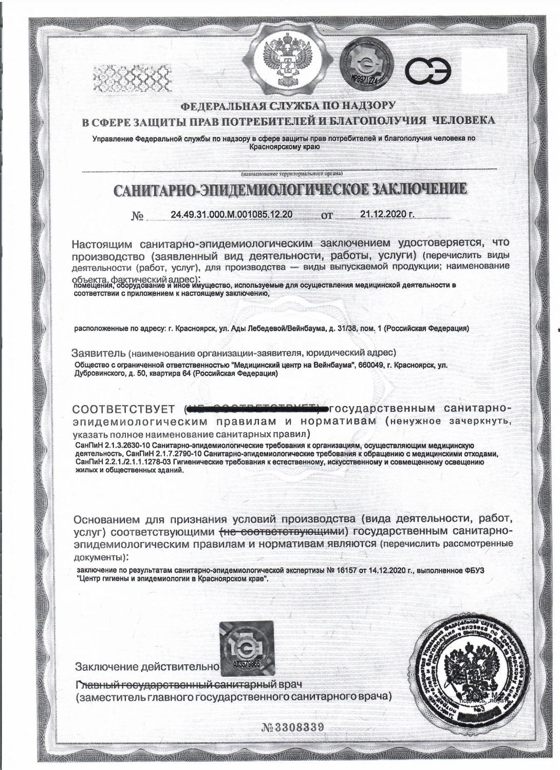 Санитарно-эпидемиологическое заключение