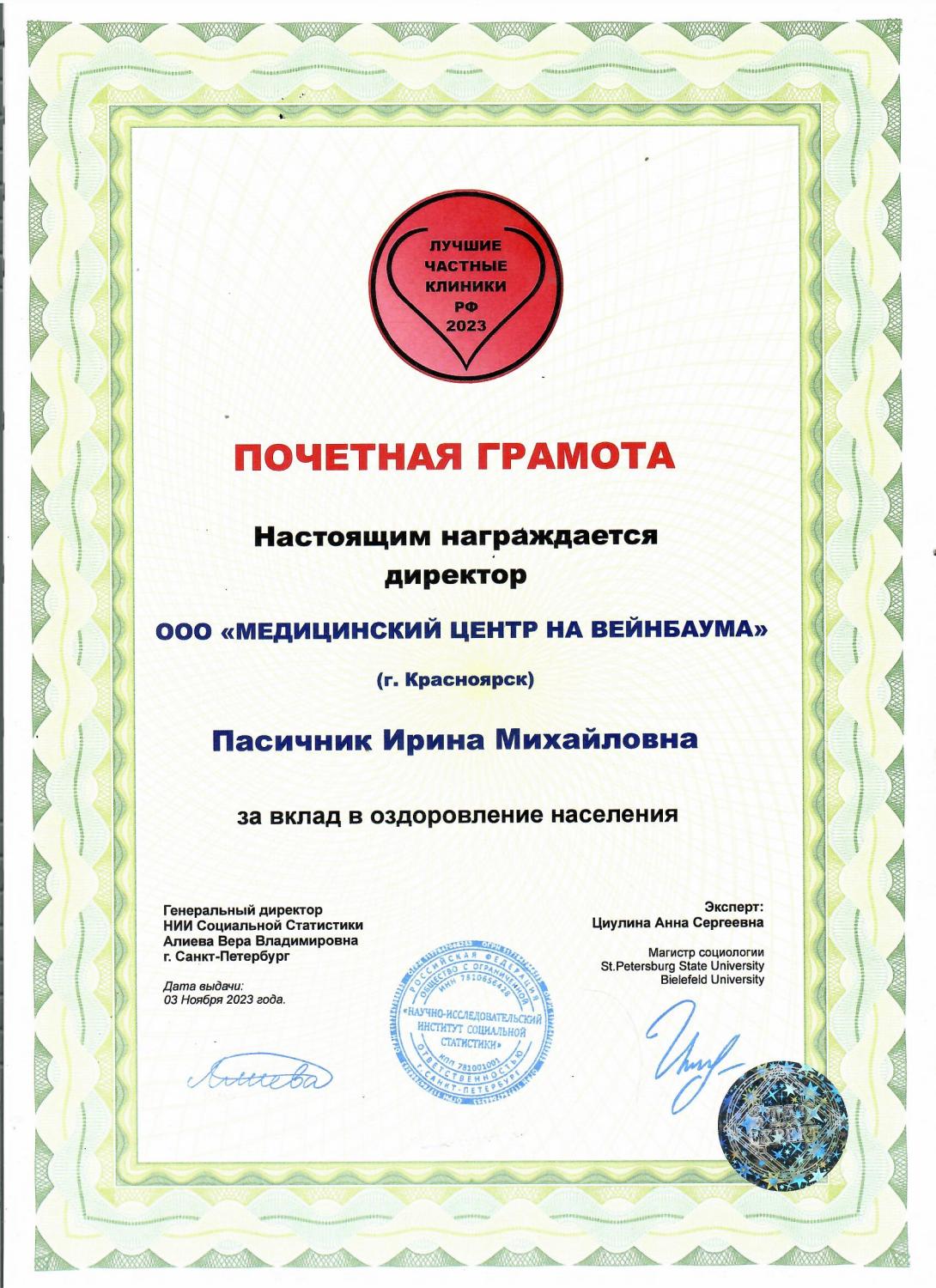 ПОЧЕТНАЯ ГРАМОТА