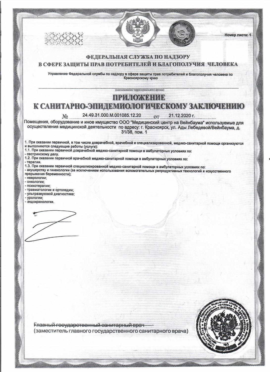 Приложение к санитарно-эпидемиологическому заключению