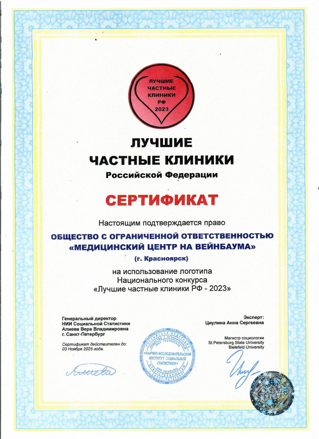 СЕРТИФИКАТ